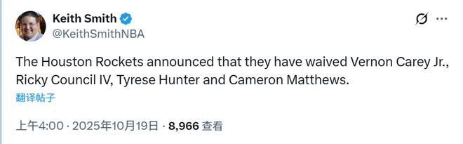 火箭队的常规赛阵容似乎已确定,目前拥有14份保障性标准合同,且3个双向合同名额均已填满。受财务状况限制——球队薪资已触及“第一土豪线”,目前仅低于该阈值约125万美元——除非通过交易削减开支,否则火箭队在本赛季晚些时候之前无法签下第15位标准合同球员。