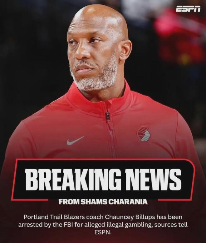 开拓者主帅比卢普斯因参与非法赌博被逮捕,该案件还涉及黑手党的非法扑克经营。