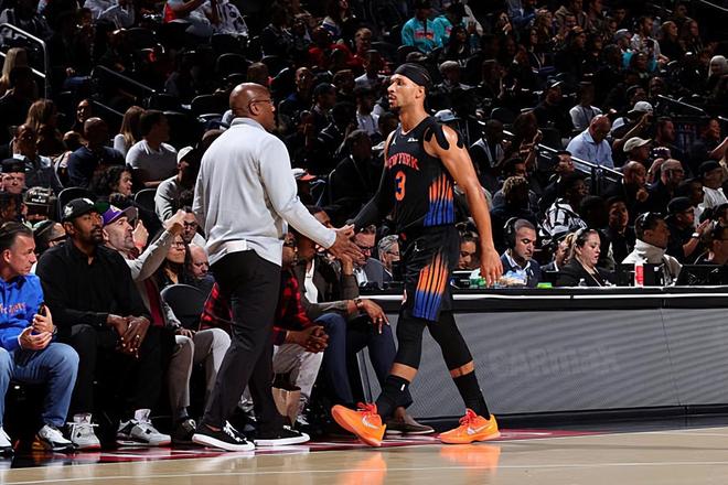 本场比赛中,尼克斯的先发锋线大将约什-哈特(Josh Hart)的表现还是相当稳定的。哈特全场出场29分16秒,投篮7中5,三分线外3中1,得到了11分8篮板3助攻2抢断1盖帽的数据,还有1次失误和4次犯规,正负值为+3。哈特在进攻端虽然出手次数不多,但是还是展现出来全面的得分能力,他也是能够通过各种方式完成得分,他也是具备一定的传球能力和策应能力的,他在进攻端也是给球队提供了不少的帮助和支持的。除此之外,哈特在防守端的表现也算得上是可圈可点,他也是展现出了相当不错的个人防守能力了。总体来看,哈特在本场比赛中也是很好地扮演了自己的角色,他也是为球队的夺冠做出了不小的贡献。