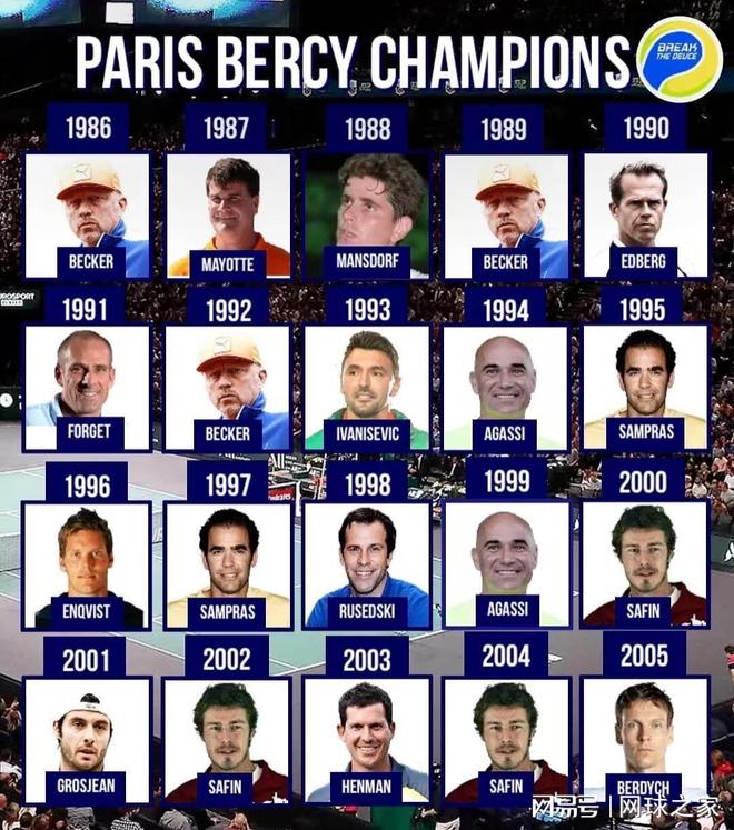 除了这两位,还有桑普拉斯、阿加西、贝克尔、伊万尼塞维奇、鲁塞德斯基等大满贯冠军都曾染指这项荣誉。