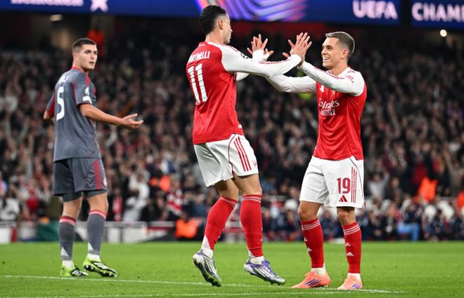 此番再度主场对阵这家希腊豪门,阿森纳上半场踢得不错。第12分钟,厄德高送出直塞,约克雷斯禁区内起脚低射被扑了一下击中立柱弹出,马丁内利跟进补射得手,帮助阿森纳1-0领先,这个比分也持续到上半场结束。下半场补时阶段,萨卡破门帮助阿森纳2-0锁定胜局。