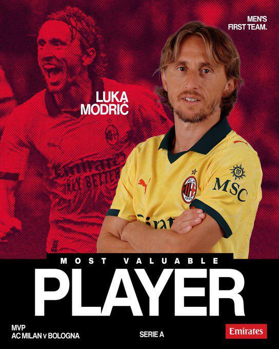 雷速体育9月15日讯 在北京时间今天凌晨结束的意甲联赛第3轮AC米兰1-0博洛尼亚的比赛中,莫德里奇打进意甲生涯首球并当选MVP。