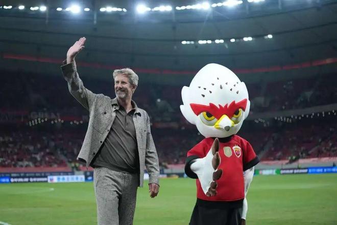 赛前,海港官宣了球队新推出的吉祥物,形象为白色雄鹰,名为“伊戈”。英超曼联队名宿、著名门将范德萨与吉祥物一同出场,引起球迷阵阵欢呼。